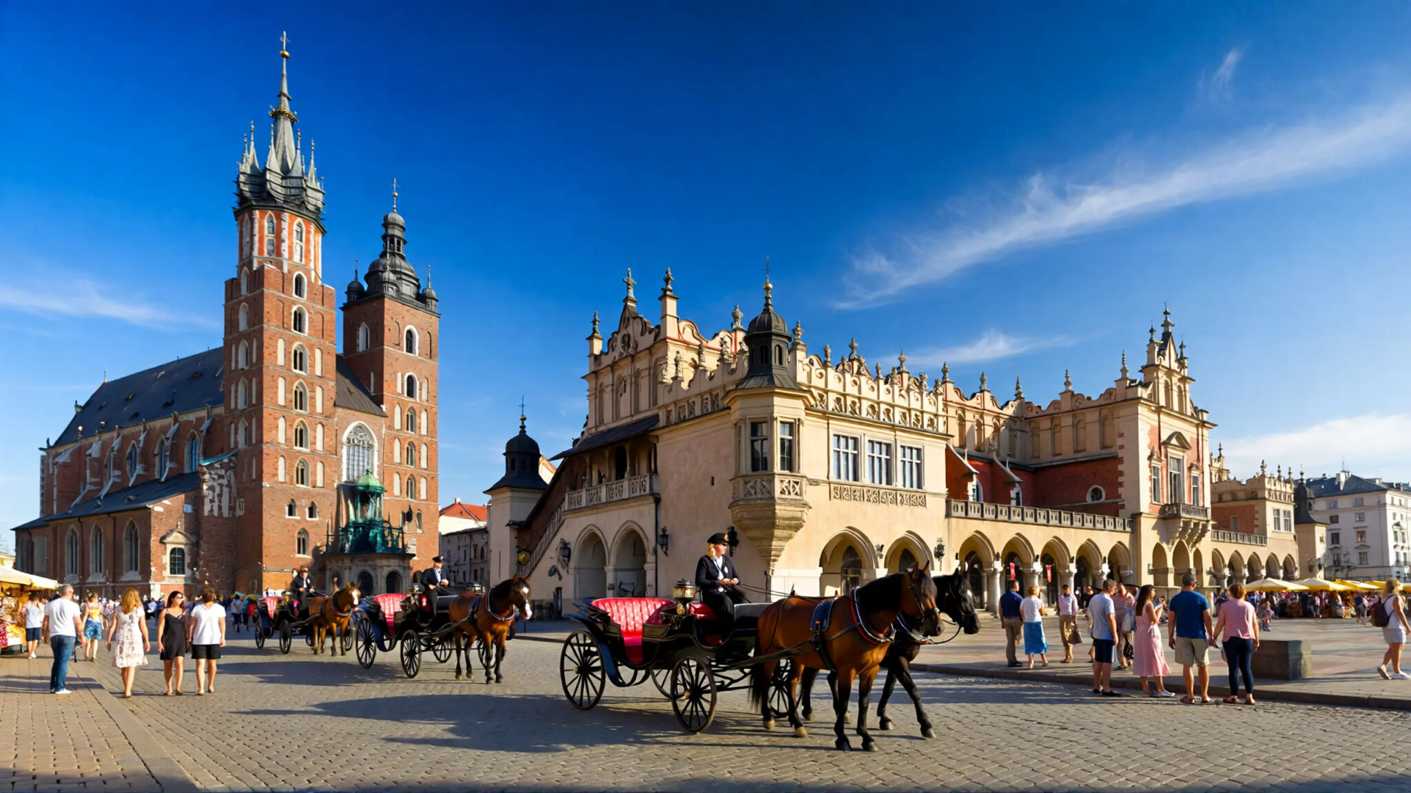 La Vieille Ville, classée au patrimoine mondial de l’UNESCO, est le point de départ idéal pour explorer la richesse de cette cité. Vous y découvrirez la célèbre Place du Marché, l’une des plus grandes d’Europe, entourée de magnifiques bâtiments historiques. Le Sukiennice, ou Halle aux Draps, trône fièrement au centre de la place, offrant un spectacle architectural impressionnant.