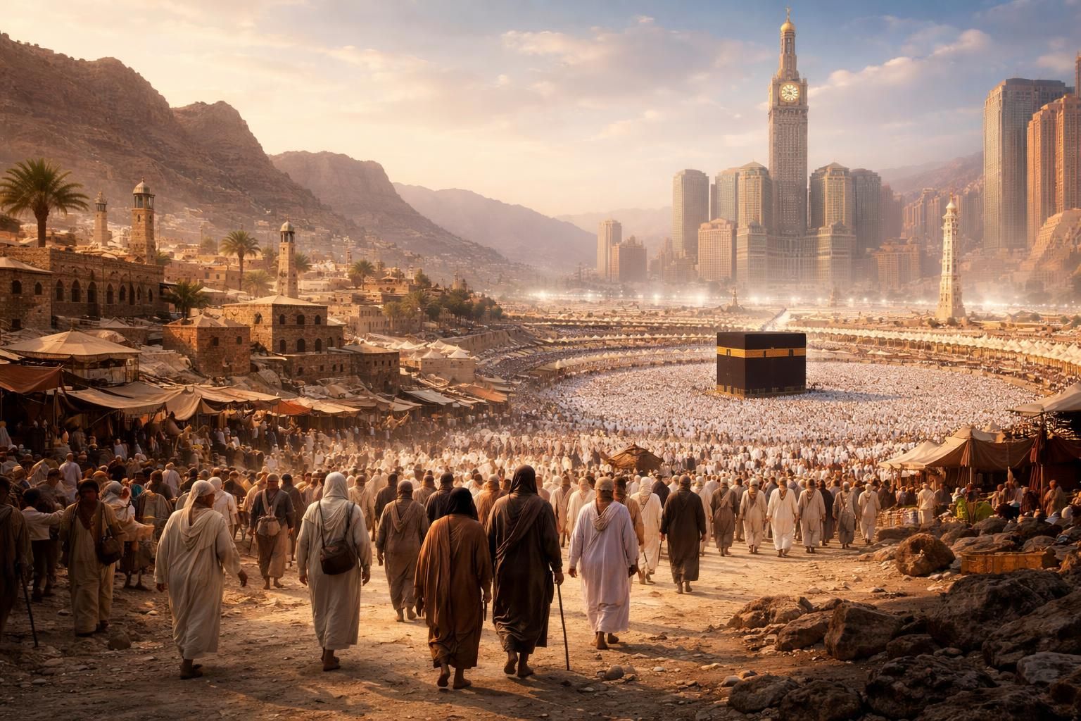 Au fil des siècles, la Mecque a connu de nombreuses transformations. Initialement, elle était un simple carrefour pour les caravanes, avant de devenir un centre religieux majeur au moment de la révélation du Coran. La ville s’est alors imposée comme le point de convergence pour les pèlerins musulmans, entraînant des changements significatifs dans son développement urbain. La construction de mosquées, de marchés et de services d’accueil ont tous contribué à la formation de l’identité moderne de la ville.