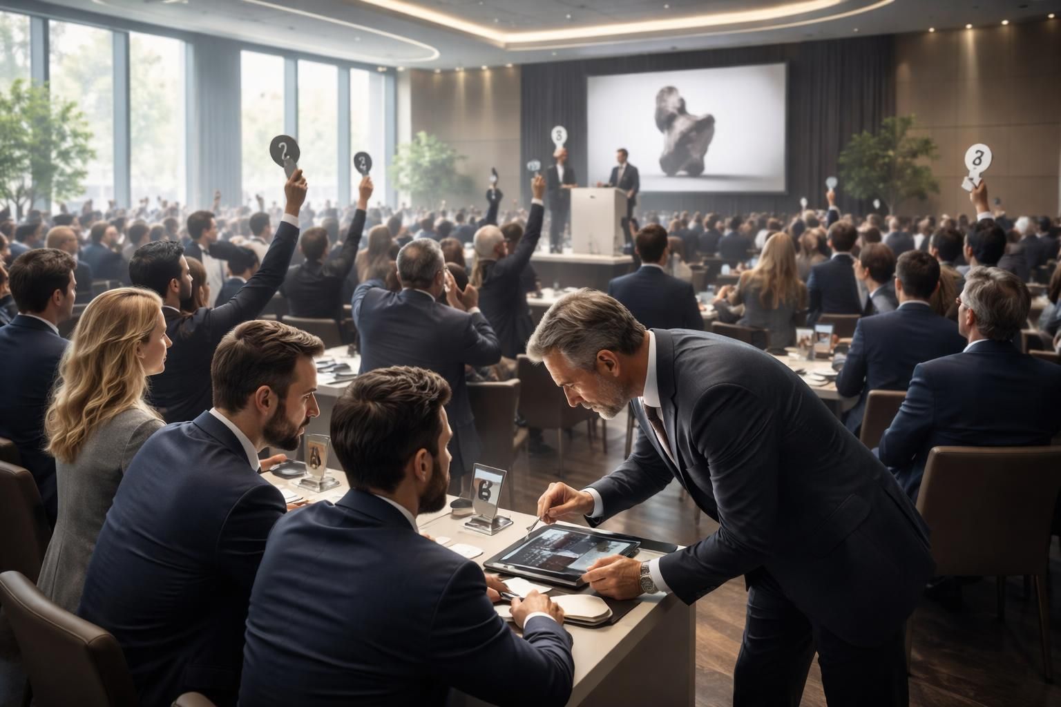 • Enchères à la criée : Ici, c’est le commissaire-priseur qui dirige l’enchère, et les participants signalent leur intention d’enchérir en levant la main.