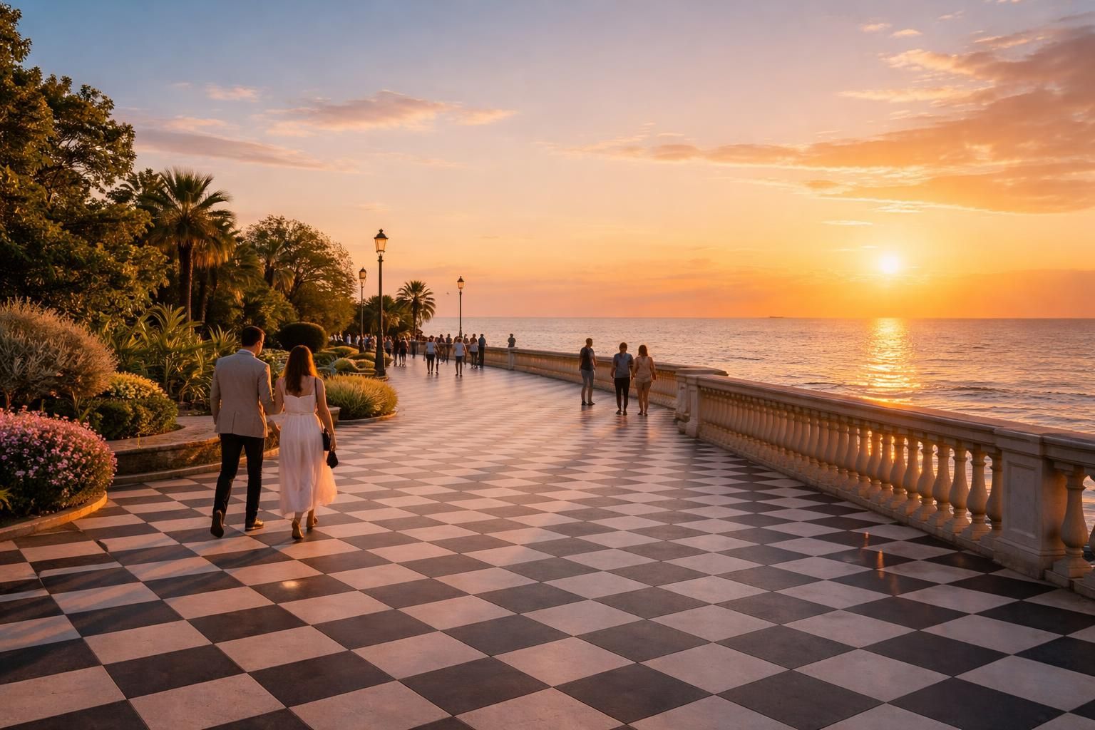L’été, de juillet à septembre, attire les foules, avec une ambiance festive et des activités variées. Les soirées se prolongent et les visiteurs peuvent profiter des couchers de soleil tardifs tout en savourant un gelato. Toutefois, la terrasse peut être bondée, ce qui pourrait diminuer l’intimité de la visite. La fin de l’été offre encore de douces soirées, idéales pour se promener le long de la promenade.